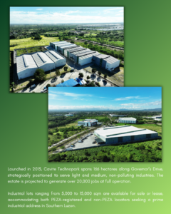 Cavite Technopark stands as one of South Luzon’s key industrial hubs — promoting long-term growth and investment opportunities for businesses seeking a strategic, sustainable, and connected industrial location.