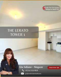 Own a high-floor unit at The Lerato Tower 1, located at 7232 Malugay Street, Bel-Air, Makati City.