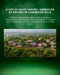 Designed with generous open spaces and secure village planning, Lanewood Hills provides a calm estate setting while remaining accessible to top schools, retail centers, and leisure destinations in the South. Its location within an Ayala Land Premier community ensures consistent estate management, thoughtful infrastructure, and enduring land value.