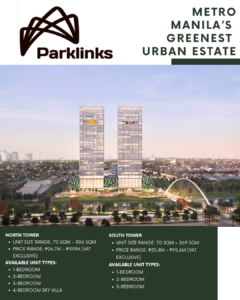 Positioned within Metro Manila’s greenest urban estate, Parklinks Residences balances contemporary city living with nature-centric planning. Residents enjoy proximity to retail, dining, offices, and everyday conveniences, while benefiting from generous green spaces, walkable pathways, and long-term estate growth.